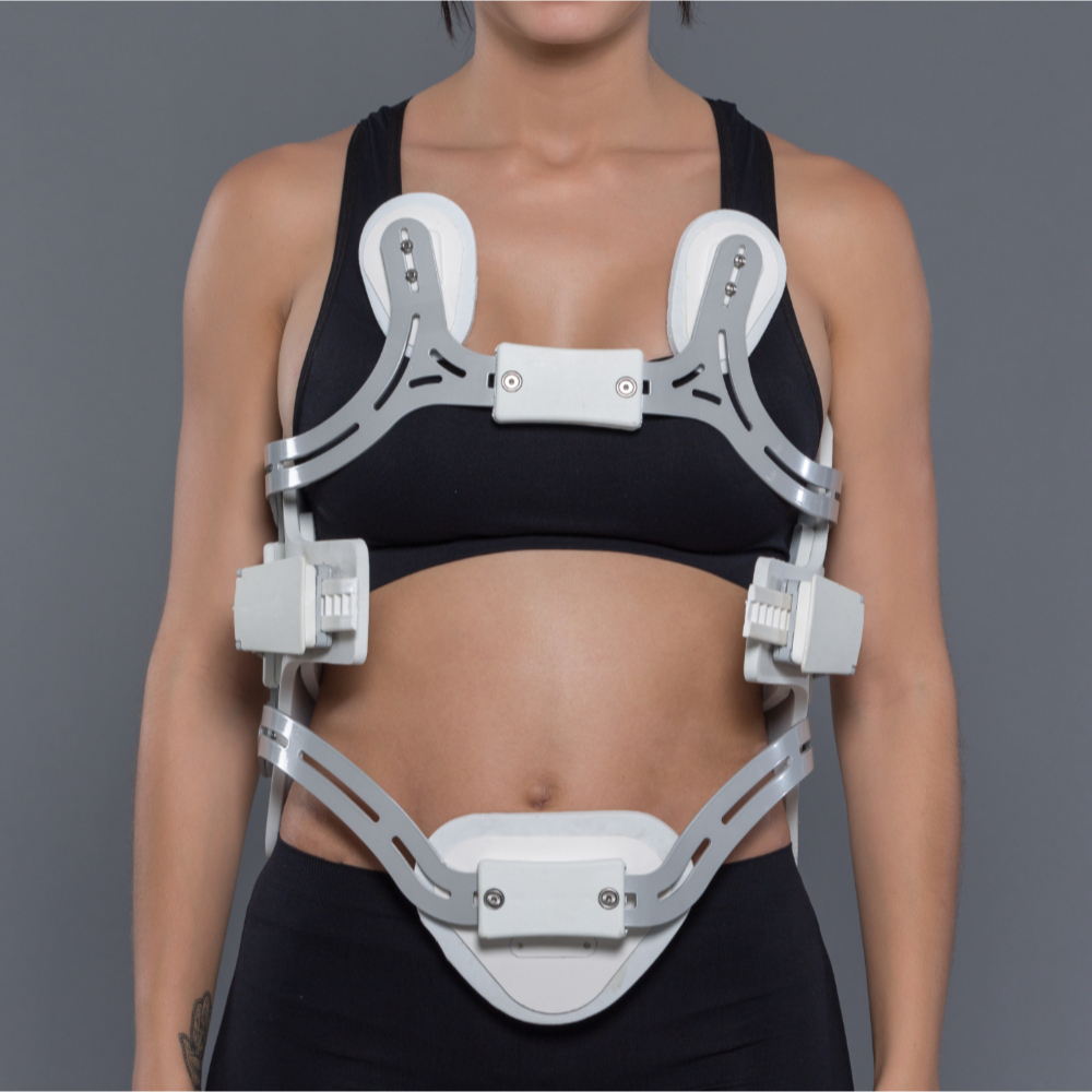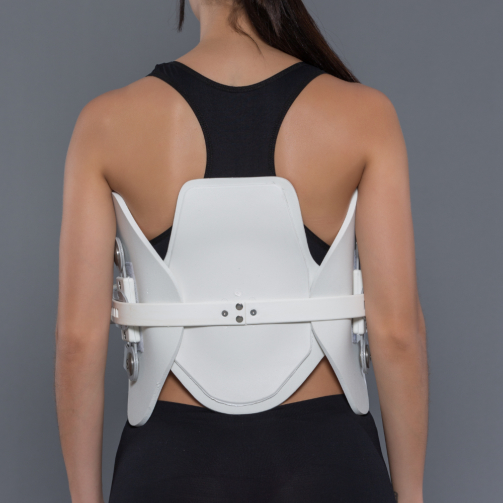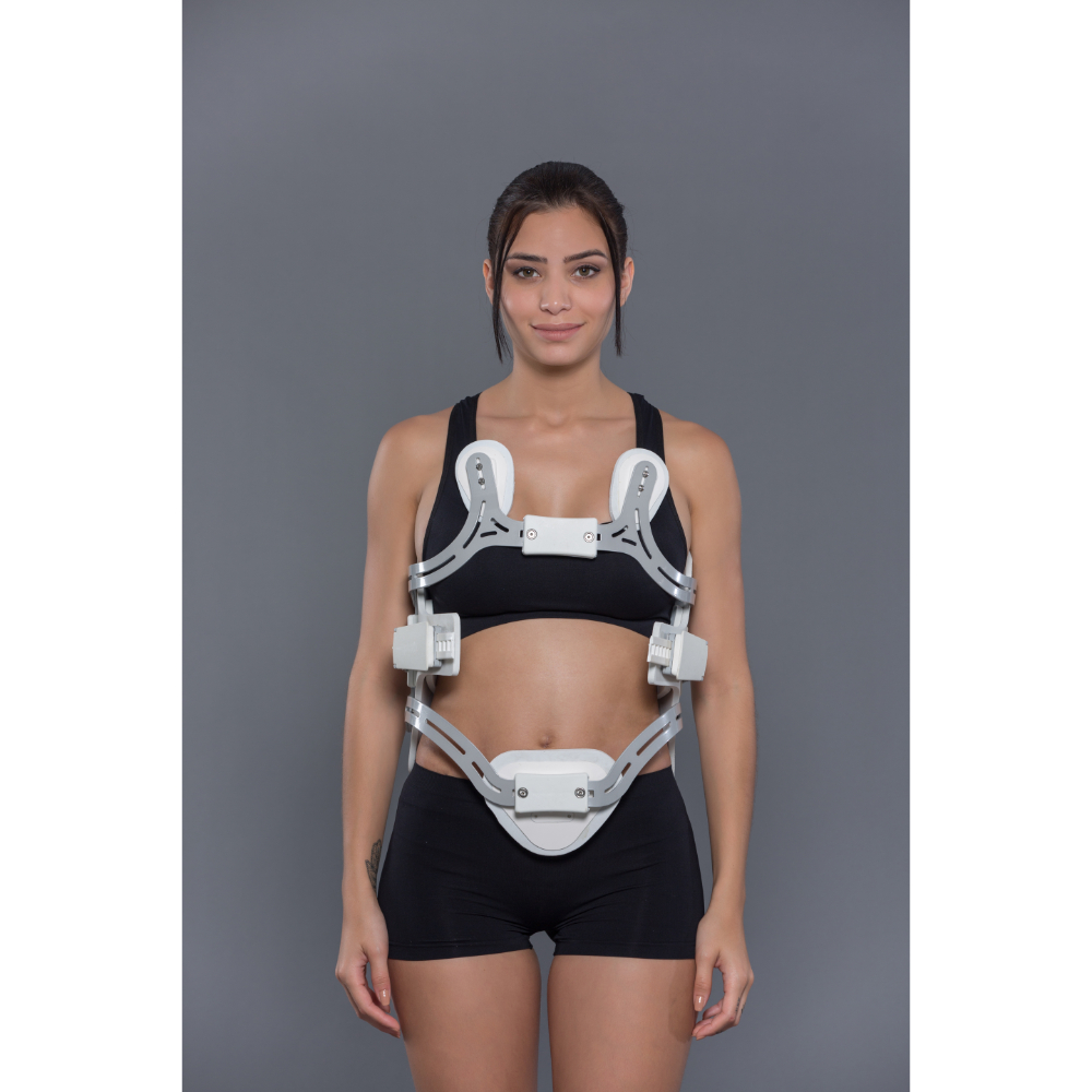 Subklavikuler ekstansiyon pedleriyle rotasyonu sınırlayan ve stabil iskelet yapısı ile lateral fleksiyonu kısıtlayan bu ortez, post-operatif tedavide de geçici bir çözüm olarak kullanılabilir.